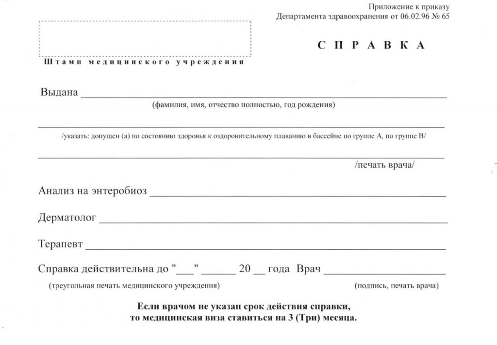Детская справка в бассейн