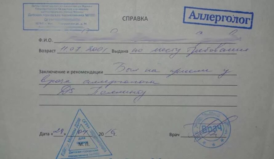 Оформляем справку от аллерголога в Москве. Вносим в ЕМИАС и федеральные реестры. Документ у вас на руках через 1 час.