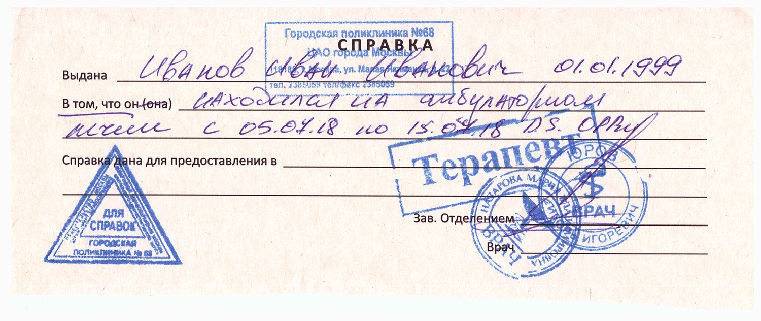 Справки выдают действующие врачи